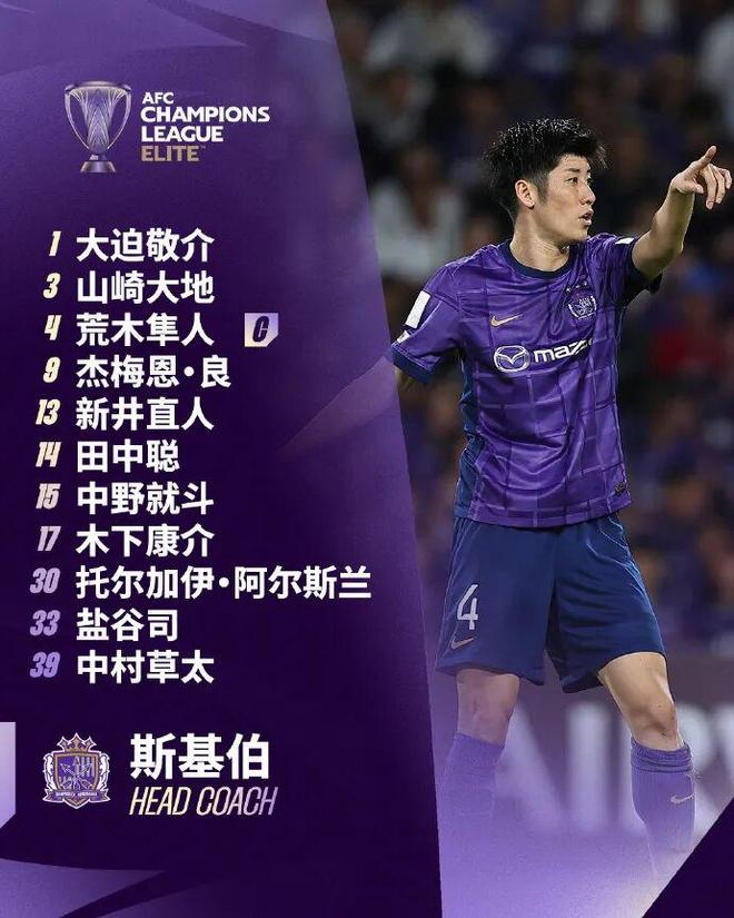 广岛三箭首发:1-大迫敬介、2-山崎大地、4-荒木隼人、13-新井直人、15-中野就斗、33-盐谷司、14-田中聪、30-托尔加伊·阿尔斯兰、9-杰梅恩·良、17-木下康介、39-中村草太;