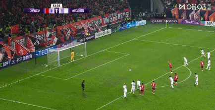 50分钟,周定洋被对方后卫在禁区内放倒,主裁判观看VAR后判罚点球,费利佩主罚点球命中!成都蓉城10广岛三箭!